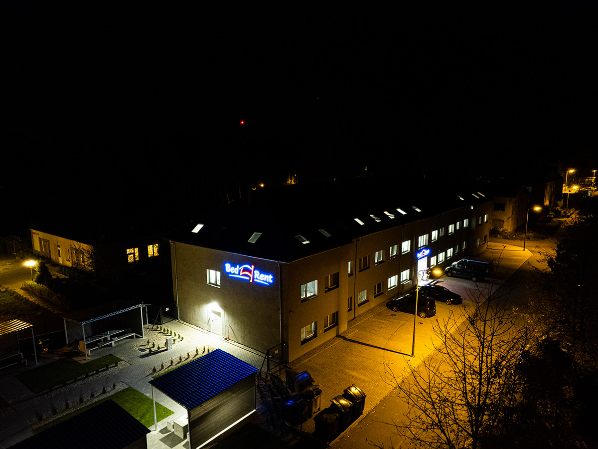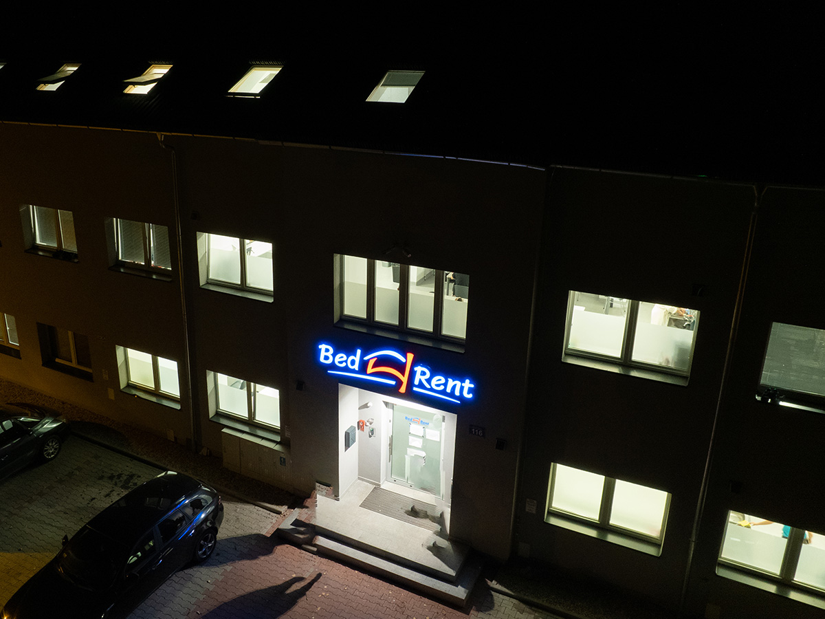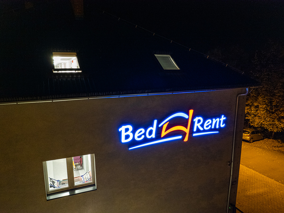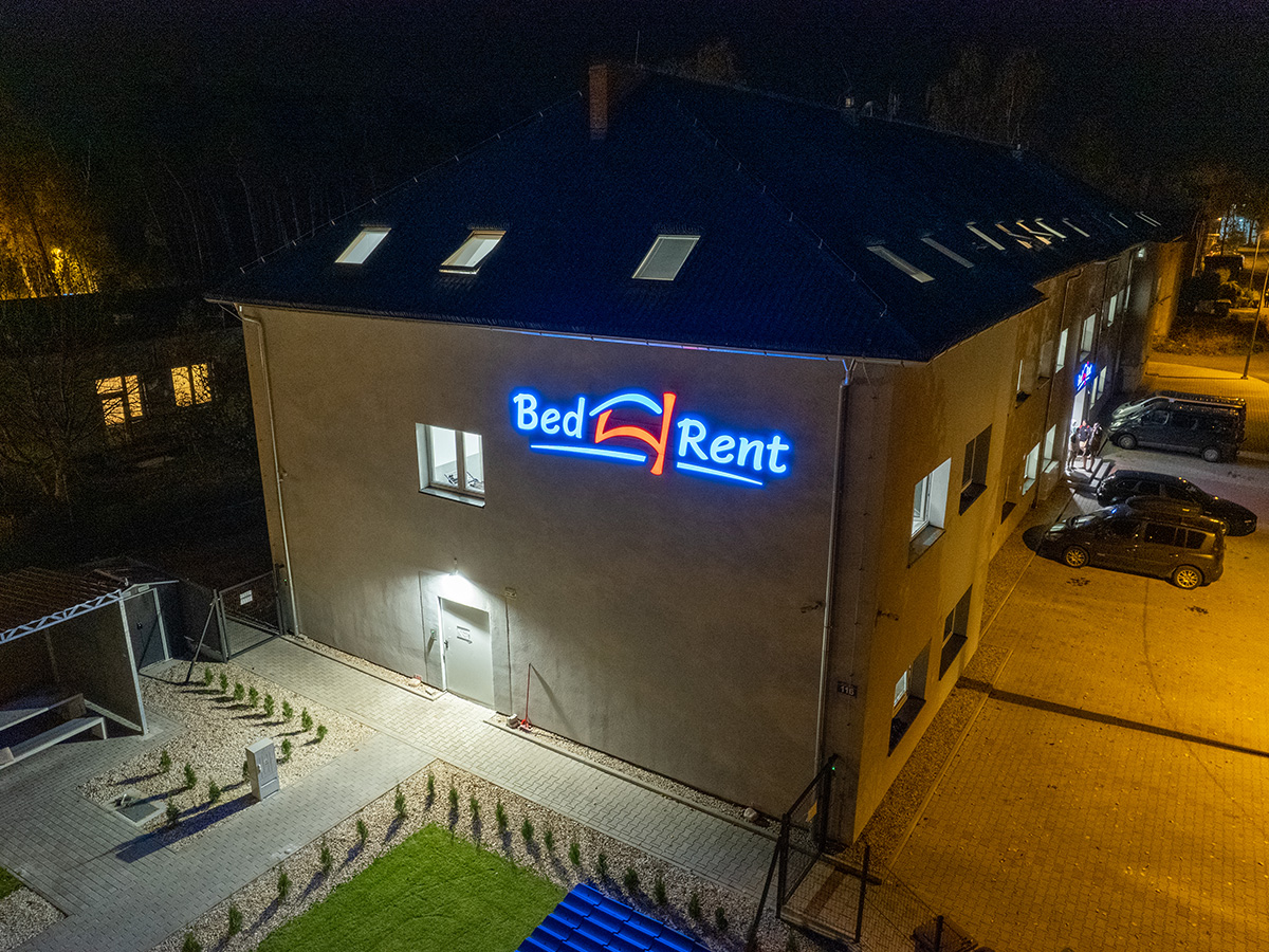 Zamówienie opiewało na wykonanie dwóch jednakowych logotypów, wykonanych w technologii liter blokowych. Różnią się jedynie rozmiarem i sposobem montażu do elewacji. Większe logo zostało wykonane na podkonstrukcji aluminiowej, która również pełni zadanie maskowania przewodów łączących litery. Mniejszy logotyp nad wejściem został przykręcony bezpośrednio do elewacji, natomiast przewody zostały ukryte wewnątrz elewacji. Litery zostały wykonane z blachy aluminiowej w kolorze szczotkowanego aluminium. Front to płyta akrylowa barwiona w odpowiednich kolorach.