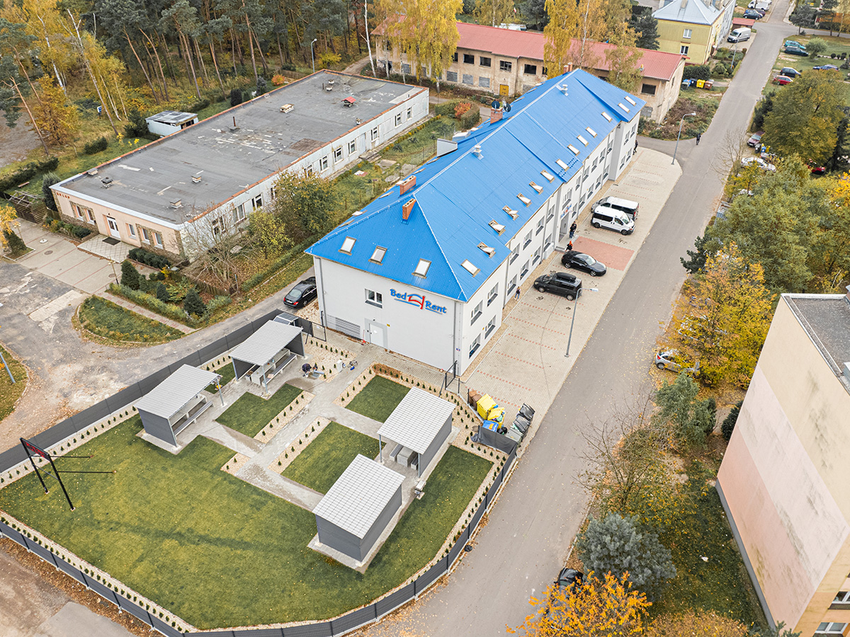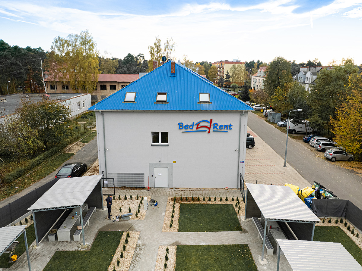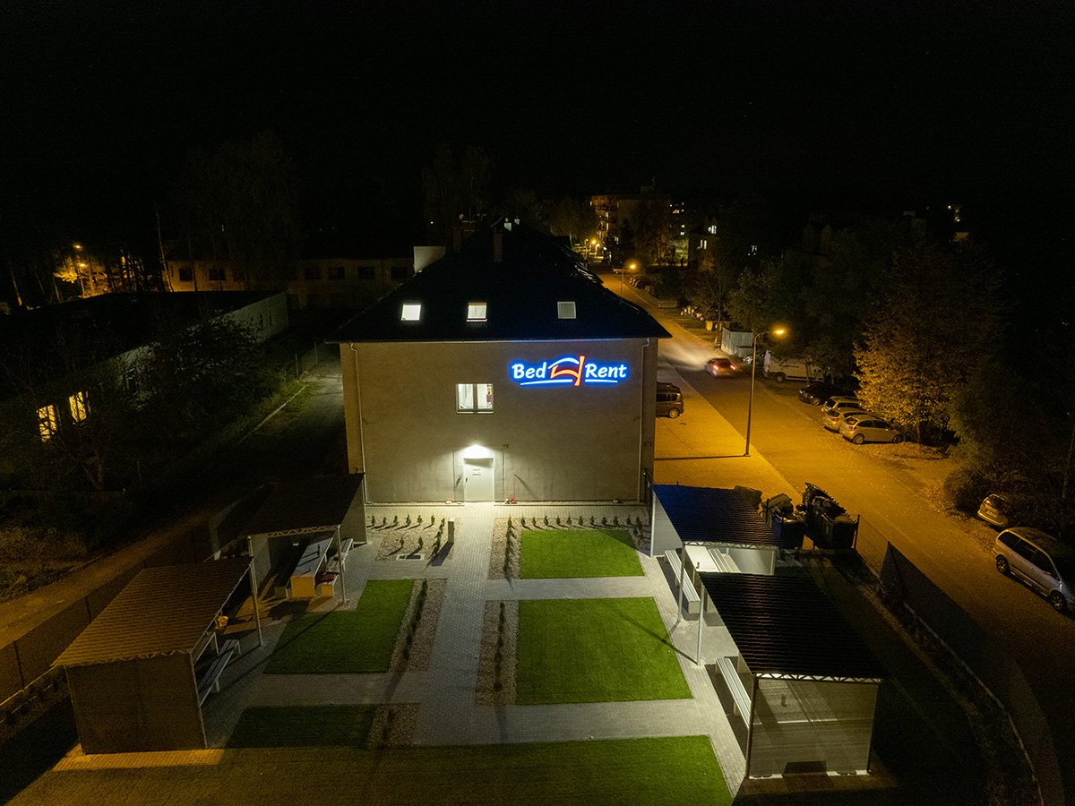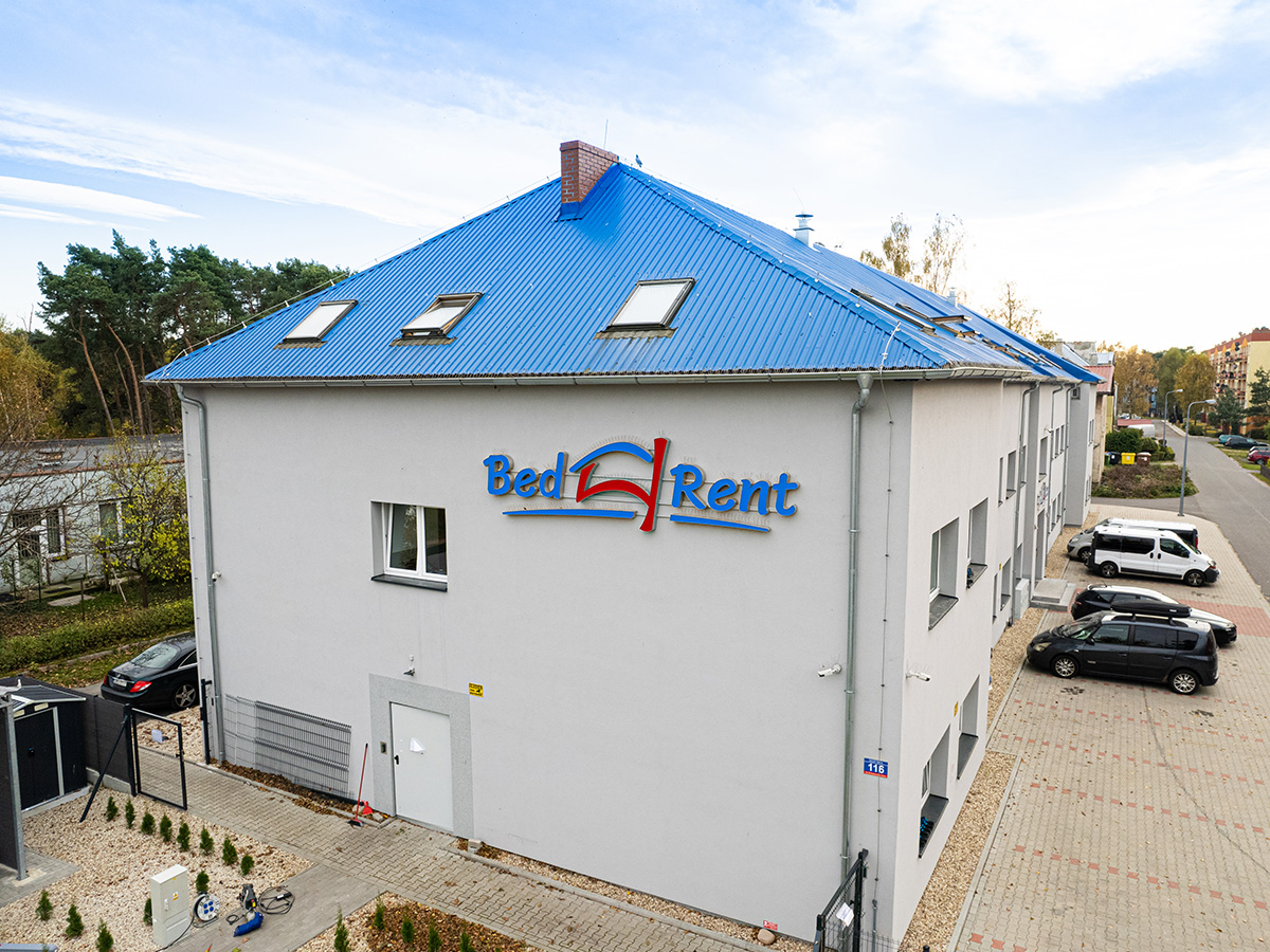 Zamówienie opiewało na wykonanie dwóch jednakowych logotypów, wykonanych w technologii liter blokowych. Różnią się jedynie rozmiarem i sposobem montażu do elewacji. Większe logo zostało wykonane na podkonstrukcji aluminiowej, która również pełni zadanie maskowania przewodów łączących litery. Mniejszy logotyp nad wejściem został przykręcony bezpośrednio do elewacji, natomiast przewody zostały ukryte wewnątrz elewacji. Litery zostały wykonane z blachy aluminiowej w kolorze szczotkowanego aluminium. Front to płyta akrylowa barwiona w odpowiednich kolorach.