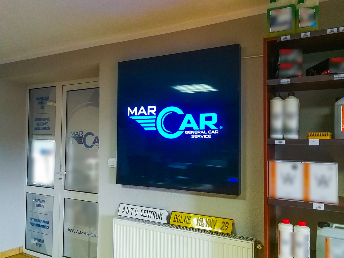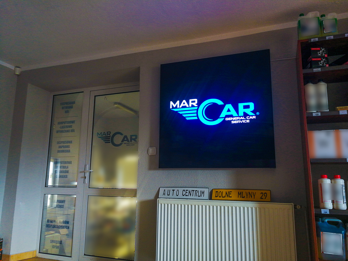 Kaseton z podświetlonym logo klienta, został zamontowany wewnątrz pomieszczenia w biurze firmy. Bardzo dokładne wykonanie pozwala aby reklama robiła duże wrażenia nawet podczas oglądania jej z bardzo małej odległości. Dzięki zastosowaniu specjalnych szerokokątnych modułów LED, była możliwość wykonania bardzo cienkiej, smukłej obudowy kasetonu.
