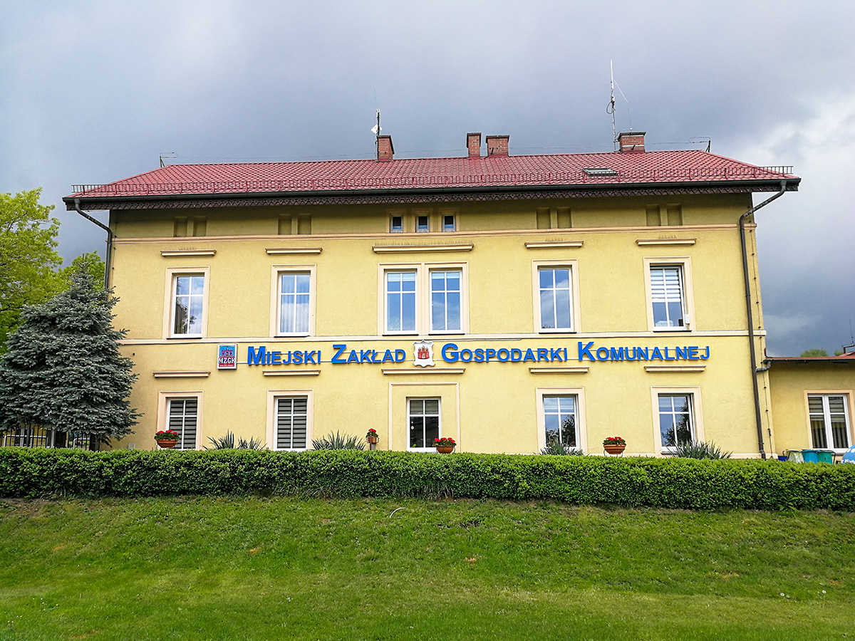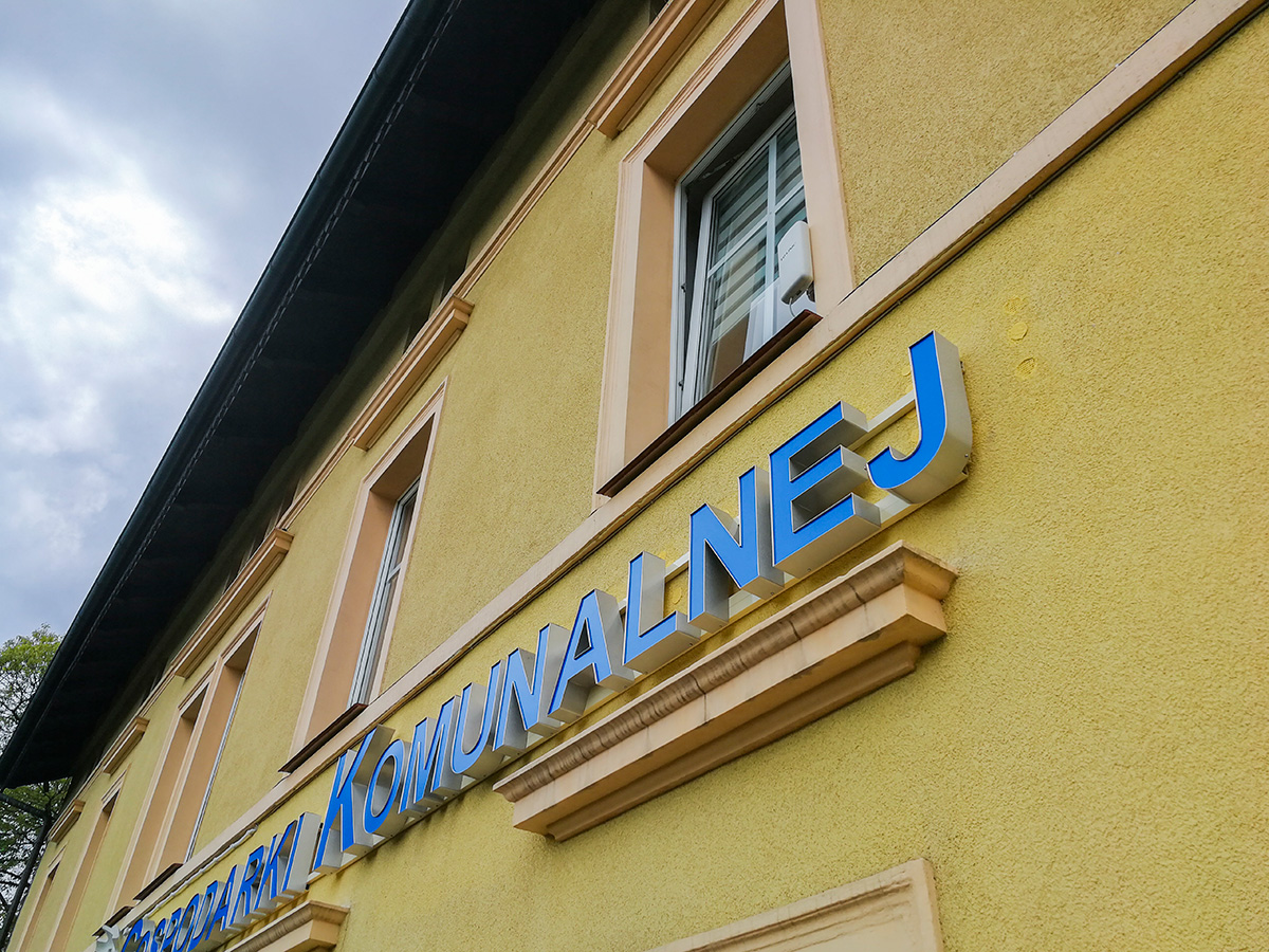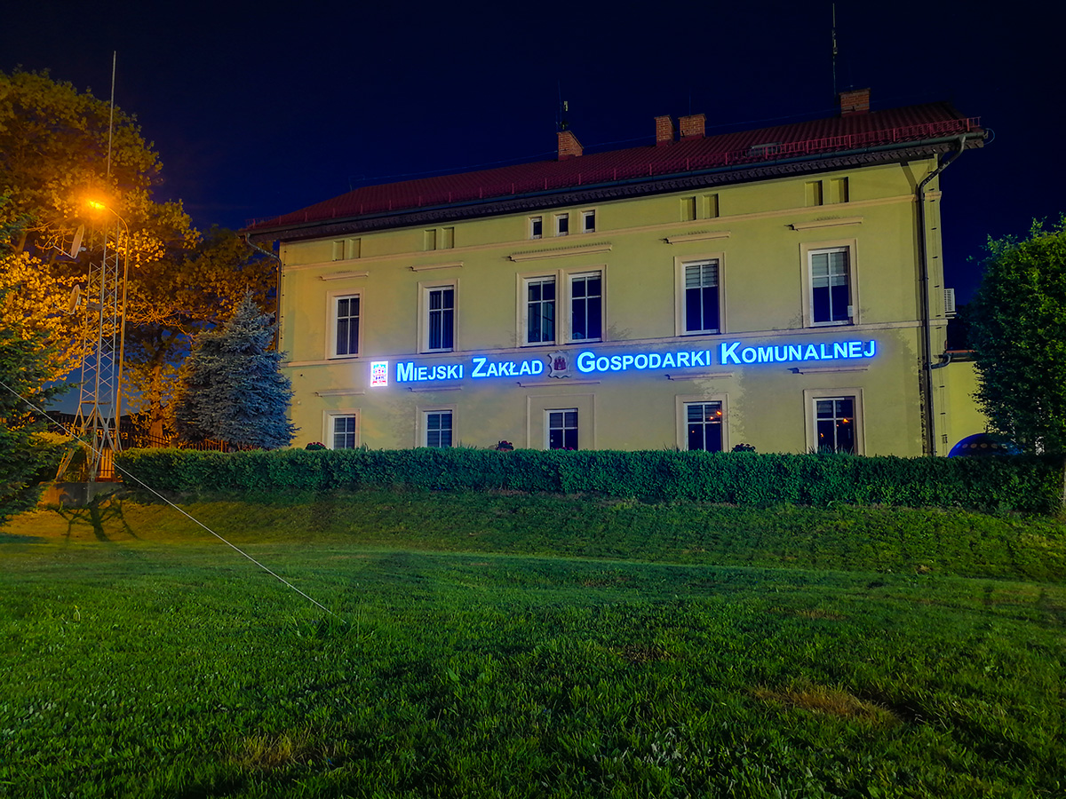 Projekt, produkcja oraz montaż podświetlanych liter blokowych na elewacji siedziby MZGK w Bolesławcu. Nowoczesna reklama zastąpiła starą i wysłużoną, wykonaną ze styroduru. Litery zostały zamontowane na konstrukcji aluminiowej, wykonanej z malowanych proszkowo profili. Kolor konstrukcji został dopasowany do barwy elewacji budynku. Reklama jest automatycznie sterowana przez czujnik zmierzchowy.