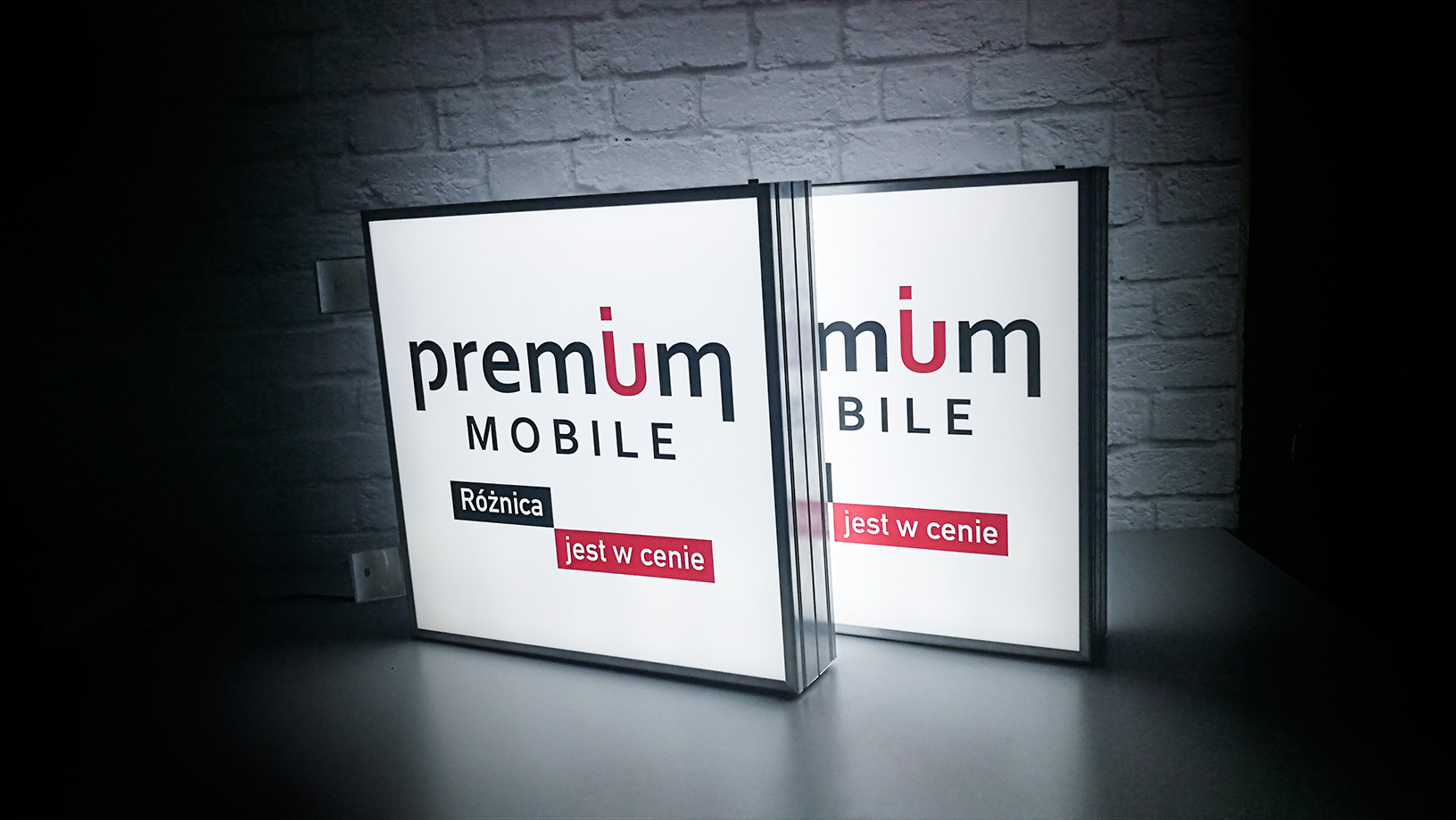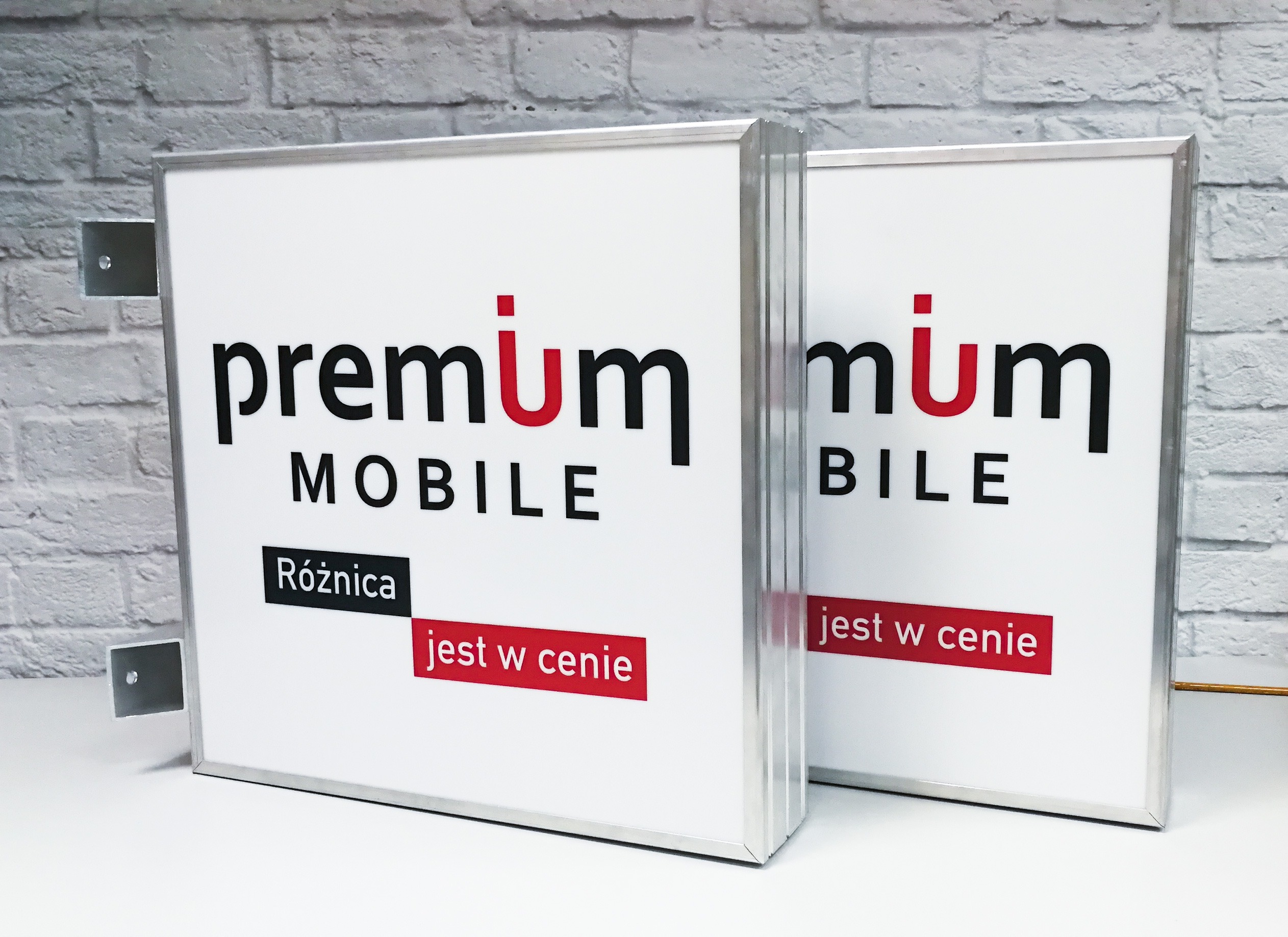 Semafory wykonane dla serwisu telefonów komórkowych. Zastosowane zostały bardzo wydajne krawędziowe moduły LED podświetlające równomiernie obie strony kasetonu