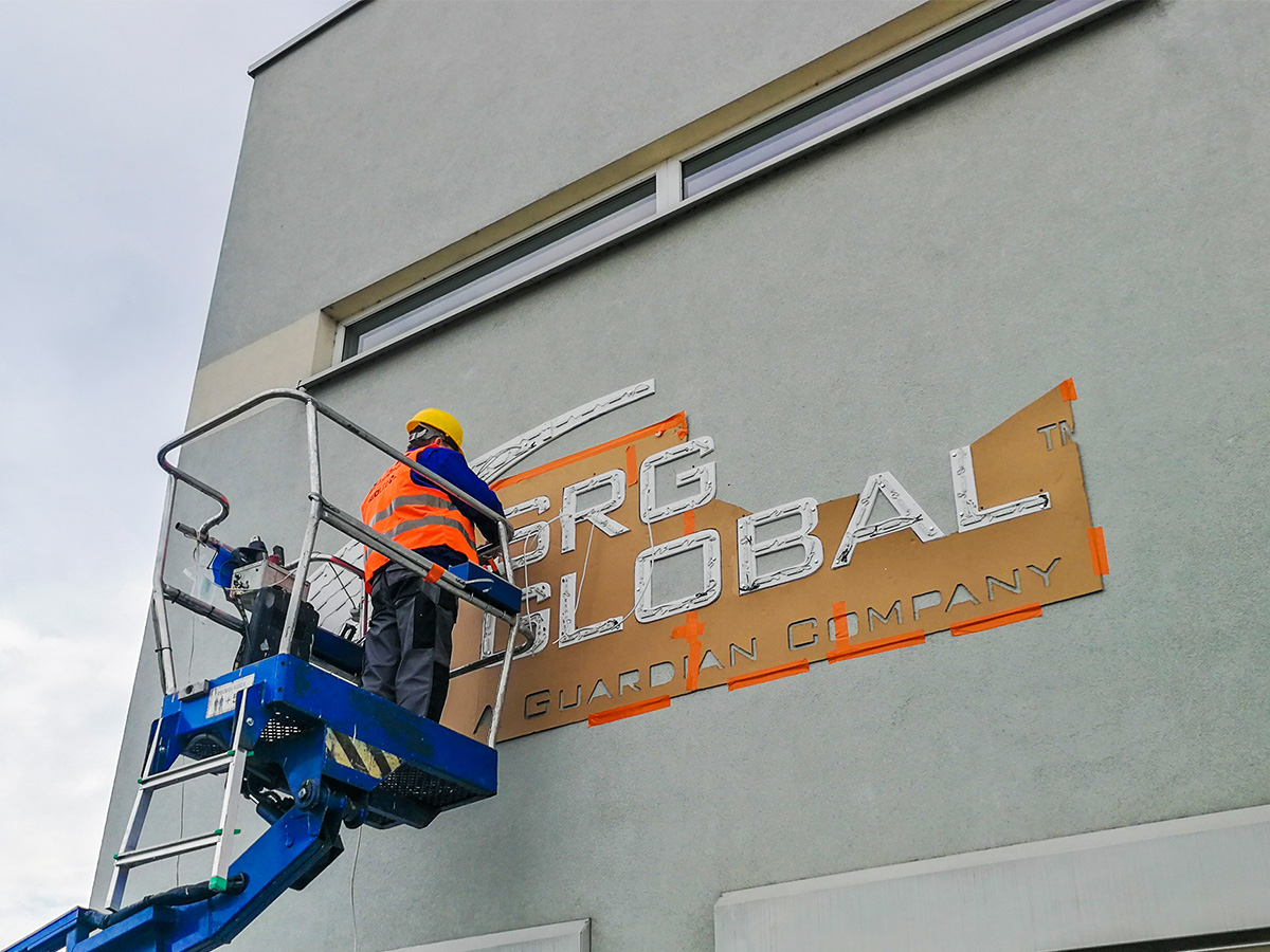 Litery Blokowe wykonane z taśmy aluminiowej. Lico z plexy opalowej oklejonej w kolorze wybranym z palety wzornika. Klientowi zależało aby nie było żadnych elementów konstrukcyjnych. Przewody zostały ukryte w elewacji - wewnątrz ocieplenia budynku. Kamuflowanie okablowania dało bardzo dobry efekt.