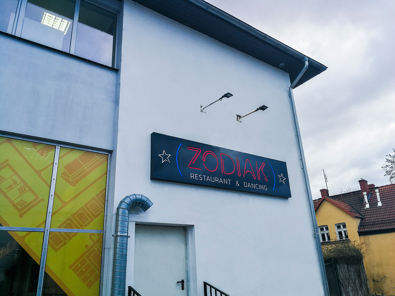 Kaseton został wykonany na wzór istniejącej reklamy. Został przerobiony front kasetonu, oraz modernizacji przeszło oświetlenie, zastosowano nowsze i wydajniejsze moduły LED oraz zamontowano czujnik zmierzchu. Reklama zamontowana w miejscu pierwotnej, dzięki temu nie było potrzeby wiercenia kolejnych otworów.